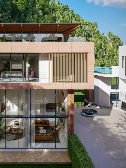 Our philosophy is to create architecture that breathes with its surroundings. These residences in Dehradun, Jammu, and Kasauli integrate earthy materials, expansive glazing, and lush greenery to create serene sanctuaries that are deeply connected to the forest and hills.