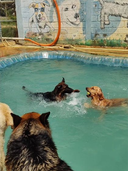 Our pool isn’t just a water tub. It’s a playground where pups can jump, splash, and chase floating toys till they’re tired out. Fetch? Always on. If your dog’s the social type, this is the place for them - let them find their own paasanga da (gang) and run riot together.