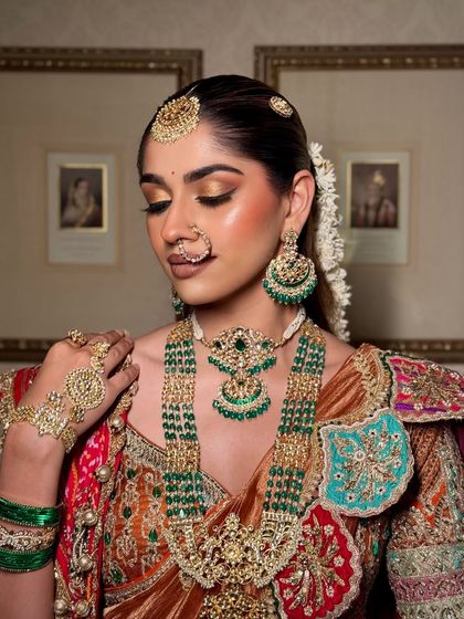 Perfect for day weddings, sundowner pheras, or modern brides who love a softer palette. This gallery features dreamy looks with pastel lehengas, focusing on my signature dewy, glass-skin finish and soft glam eyes that catch the golden hour light beautifully.