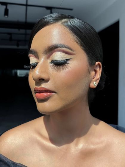 As an award-winning graduate of SMA International Makeup Academy, I have a strong foundation in advanced techniques. This collection features my demonstration work, including intricate cut creases, bold Arabic eye makeup, and flawless airbrush application. This is proof of my technical skill and ability to execute complex, creative visions.