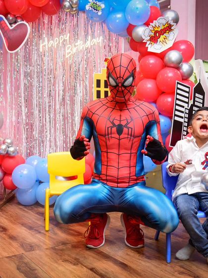 Every party gets its own custom themed decorations - think huge balloon arches, flashy backdrops, neon birthday signs, and character cutouts. I don’t stop at looks. Kids get mascot visits (Spider-Man dropping by is a hit), classic games, and free run of a massive play zone with slides, trampolines, and climbing walls. No dull moments.