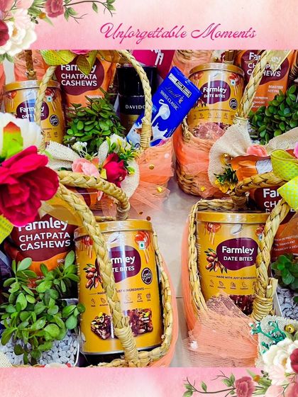 We specialize in creating elegant return gift hampers for weddings and engagements that leave a lasting impression on your guests. Our hampers feature handpicked luxury items, including premium dry fruits, gourmet treats, and traditional sweets like OM Dry Fruit Chana Burfi.