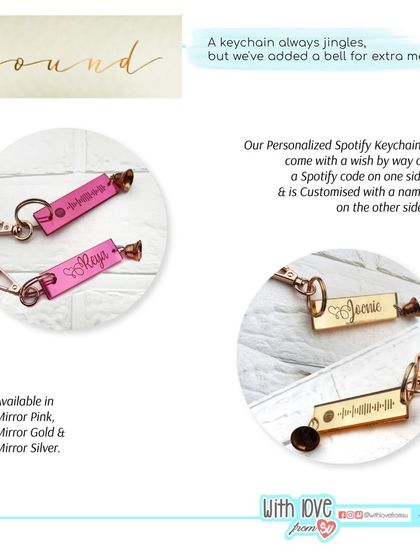 I make everyday items special. Choose from personalized vegan leather sanitizer holders with your initials in gold or silver foil, or a custom Spotify keychain that plays your special song when scanned.