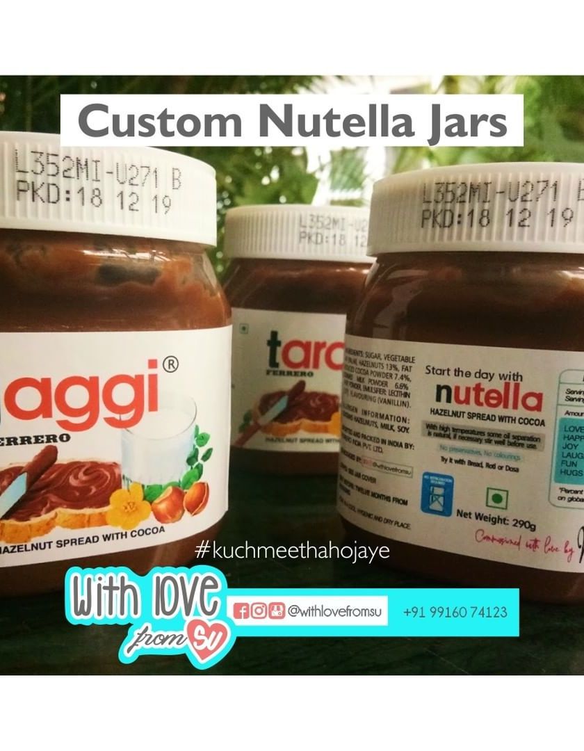 Perfect for celebrations like Deepawali or just for a "kuch meetha ho jaye" moment. I offer personalized Nutella jars and have curated other sweet treats for my gift hampers.