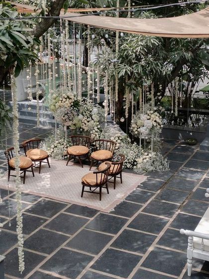 We believe a wedding ceremony should be a sacred space that reflects the couple's story. This collection features a range of our mandap and ceremony designs, from traditional South Indian setups with fragrant flowers and carved pillars to rustic, nature-inspired altars that blend seamlessly with their surroundings.
