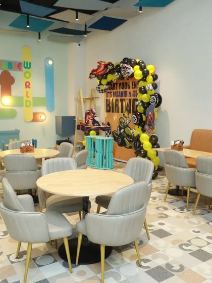We offer a diverse menu of kid-friendly snacks and treats through our in-house café. Our offerings include burgers, pasta, Maggi, mini pizzas, French fries, popcorn, and special treats like cotton candy and a chocolate fountain with marshmallows.