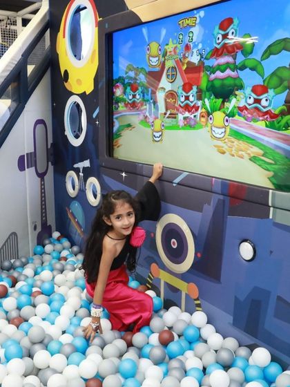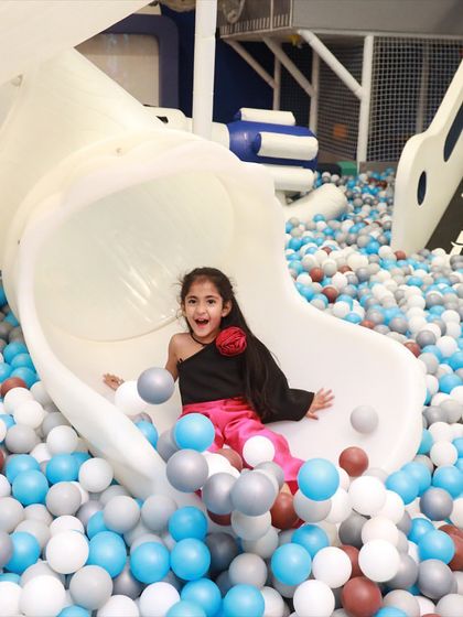 - Giant Ball Pit: Large scale pit (approx. 200 sq ft) filled with hygienic blue, white, and grey balls.