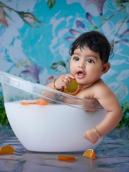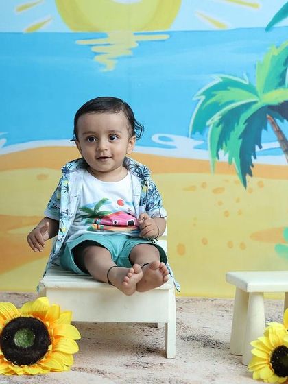 We specialize in capturing precious moments of children through themed and milestone photography sessions. Our expertise includes creative toddler shoots using engaging props like crescent moons, beach themes, and festive decorations. We're particularly known for milestone celebrations like first birthdays with cake smash sessions.