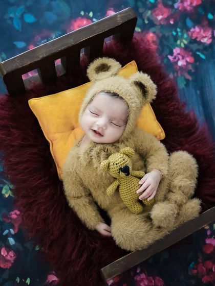 We specialize in using a wide variety of props to create adorable and artistic portraits. This collection showcases babies posed safely and comfortably in different baskets, beds, bowls, and swings, all available in our four Bangalore studios.