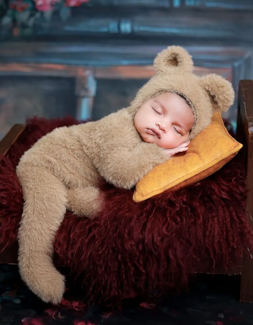This collection focuses on the timeless art of newborn posing. Using simple, colorful backdrops and soft wraps, we highlight your baby’s natural, curled-up positions and delicate features, creating classic portraits you will cherish forever.