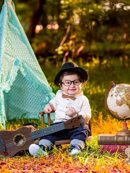 We do kids’ milestone and creative photoshoots with ready themes, props, and setups, so you just show up and let your child be themselves while we capture the moments.
