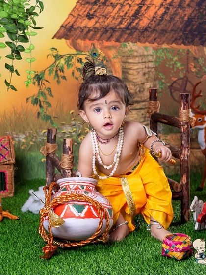 Theme Shoots Galore - Krishna theme baby shoot, superhero setups, fairy tale photoshoot – just ask, we’ve got props and wild ideas.