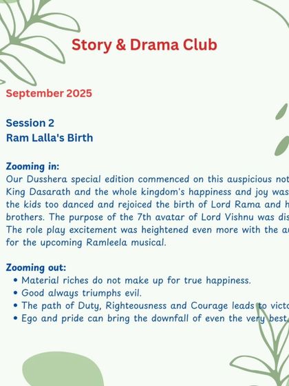 In our Story and Drama club, children dive deep into Indian epics like the Ramayana and Mahabharata. We use role-playing, drama exercises, and storytelling to explore timeless lessons on courage, focus, and righteousness in a fun, engaging way.