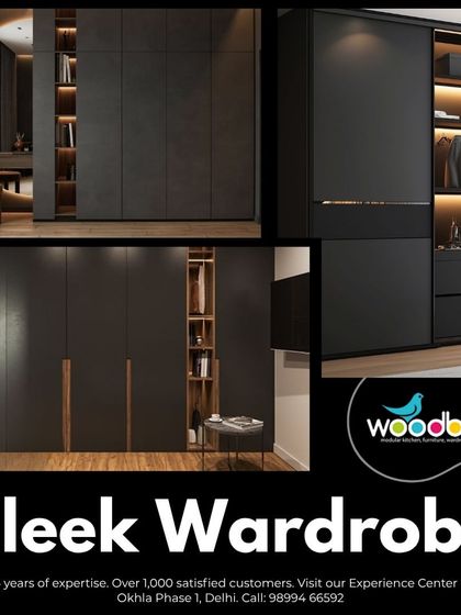 We design, manufacture, and install fully customized modular wardrobes in our own factory, with options to see materials and designs at our Okhla Experience Center.