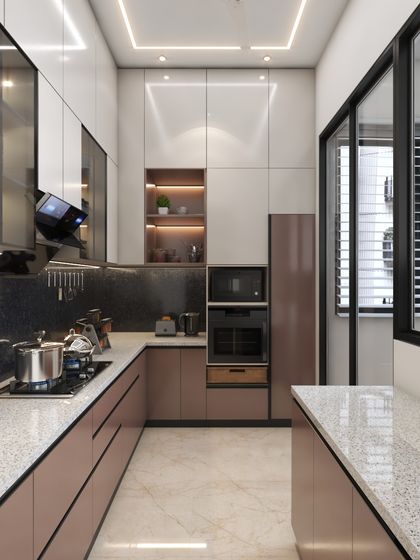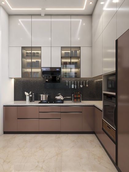 Homeowners seeking sophisticated, custom-designed modular kitchens that maximize space efficiency while maintaining a luxurious aesthetic. Perfect for those who value both style and functionality in their cooking space.