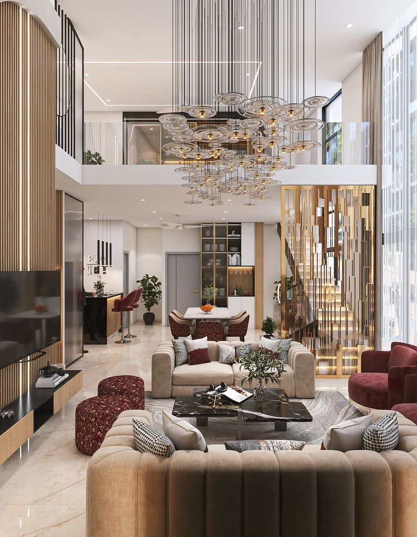 This is where your family’s story unfolds. I design living areas that are perfect for everything, from lazy Sunday afternoons to grand celebrations. My focus is on creating a comfortable vibe with smart layouts, luxurious textures like marble and velvet, and custom furniture that reflects your personality.