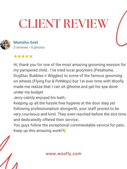 We’re pet folks, just like you. Getting our moody cat into a box or our big goofy dog into the car used to be a circus. That’s how Woofly happened - why not bring the love (and scissors) to your home? Seeing pets chilled out and parents smiling, that’s our jam. Reviews calling out our groomers by name? Makes our day! We pick people who actually love animals, not just the job. Happy pets, happy humans, simple as that.
