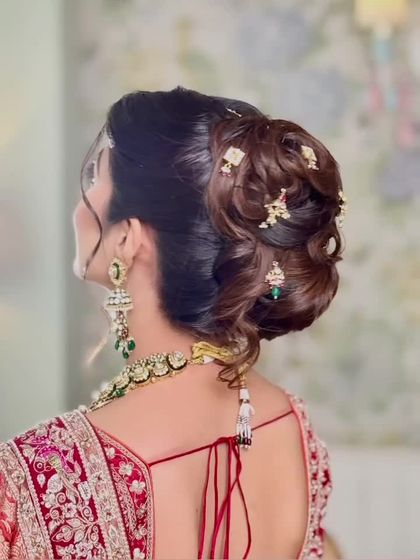 My floral buns are one of my most requested styles. I create a range of updos, from intricate traditional buns to soft, messy styles, always using fresh flowers like roses, baby's breath, or custom arrangements to complete the look.