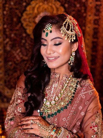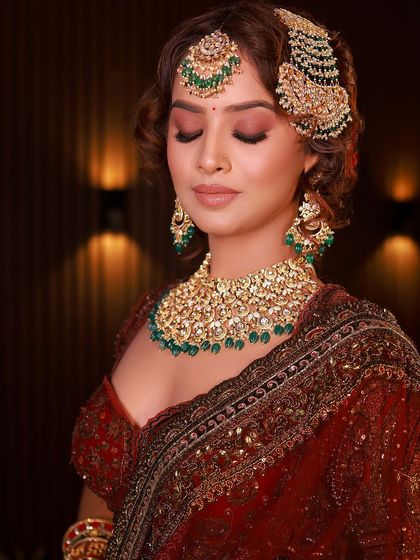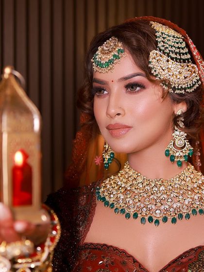 I create intricate bridal hairstyles that complement traditional accessories like Maang Tikka and Sheesh Patti. My services blend modern styling techniques with classic charm, ensuring your bridal look is both timeless and elegant.