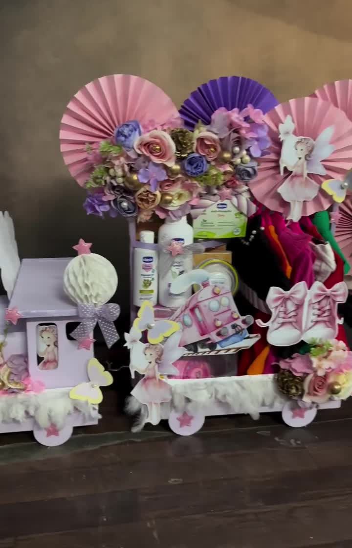 Packing the baby's first essentials is a tradition filled with love. I create elaborate, themed trousseau displays, from miniature trains and acrylic wardrobes to balloon-filled prams, turning your gifts into a spectacular showcase.