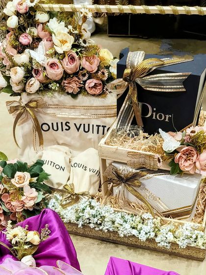 The exchange of gifts during a wedding is a tradition filled with emotion. I specialize in the art of trousseau and engagement gift packing, transforming your precious items into stunning visual displays. Whether it's packing a bride's entire collection in a cohesive theme or arranging sagai gifts with fresh flowers and luxury fabrics, I ensure the presentation is as beautiful as the gift itself.