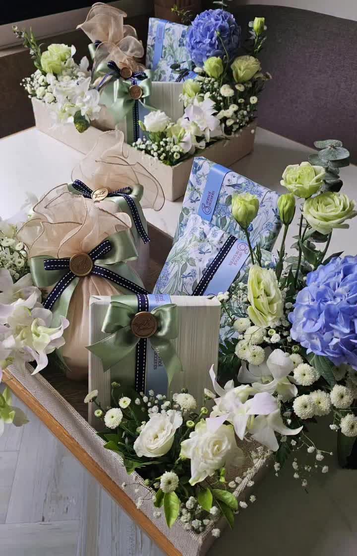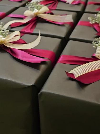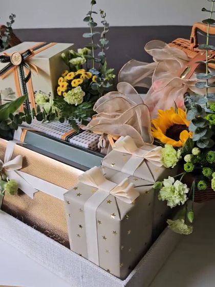 The final presentation is just as important as the gift itself. I obsess over the details, from the choice of ribbon to the finishing touches. This section highlights my signature gift wrapping style, which combines high-quality materials, elegant bows, and delicate embellishments like pearls and fresh flowers to elevate any gift.