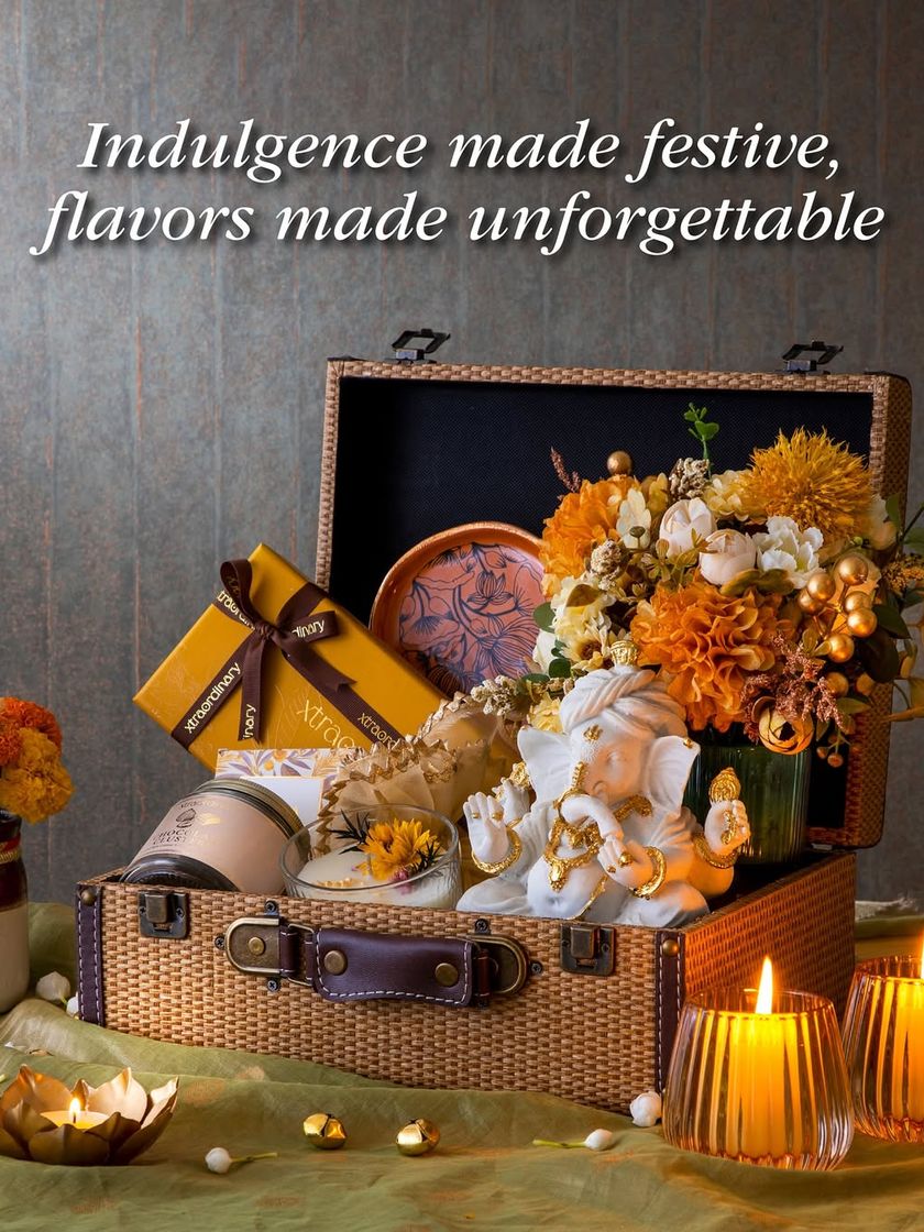 Make your festivities brighter with hampers that blend tradition and modern indulgence. Each box is thoughtfully curated with my signature preservative-free sweets, artisanal chocolates, and gourmet snacks, alongside festive essentials like Ganesha idols and scented candles.