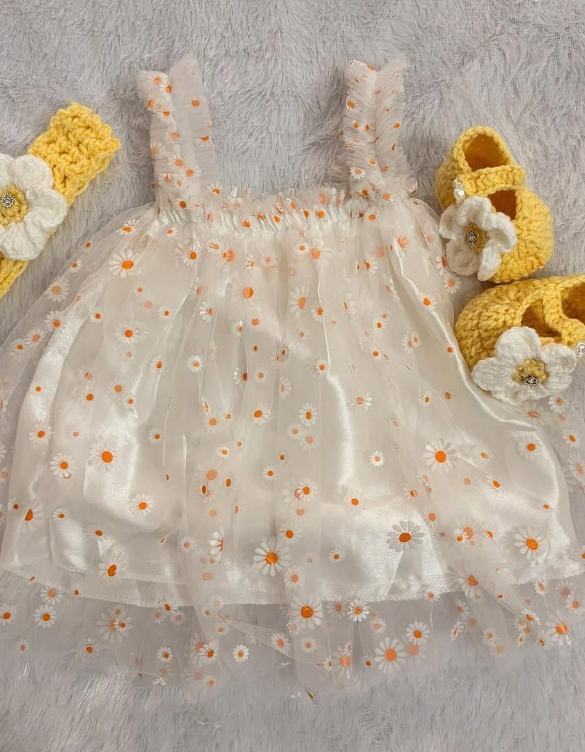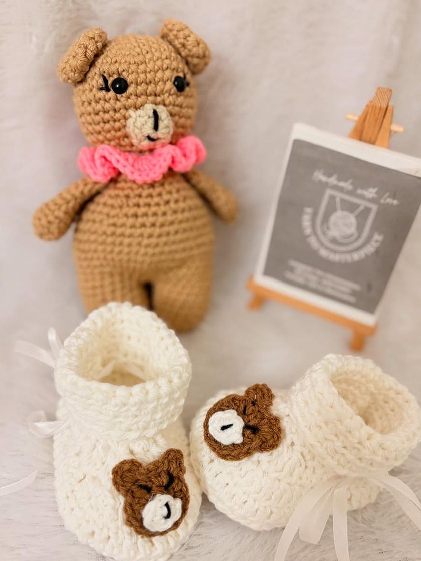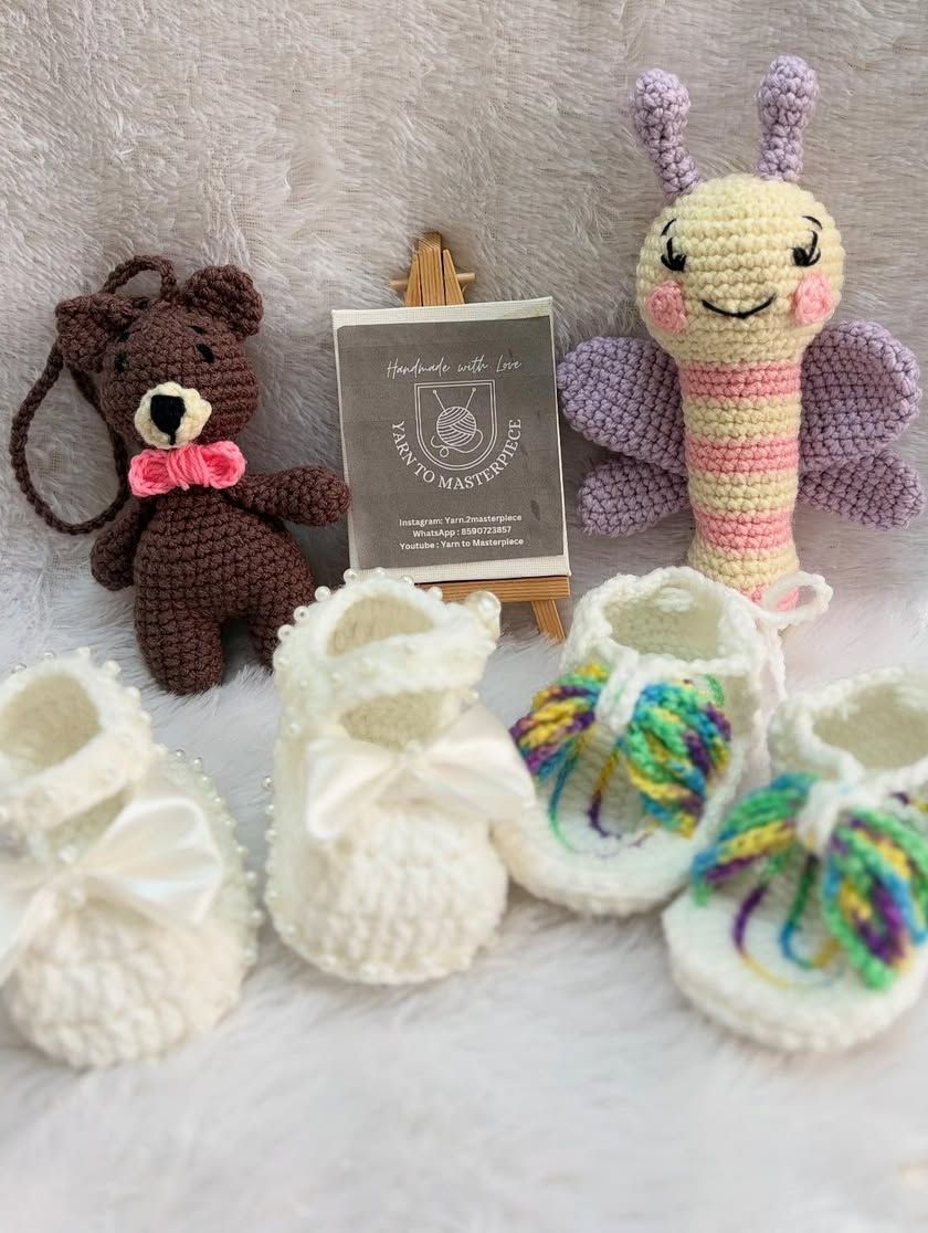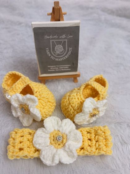 Dress your little one from head to toe in my adorable handmade outfits. Each set includes a main piece, like a frock or sweater, with perfectly matching accessories such as booties and headbands, all crafted from soft, baby-safe yarn.