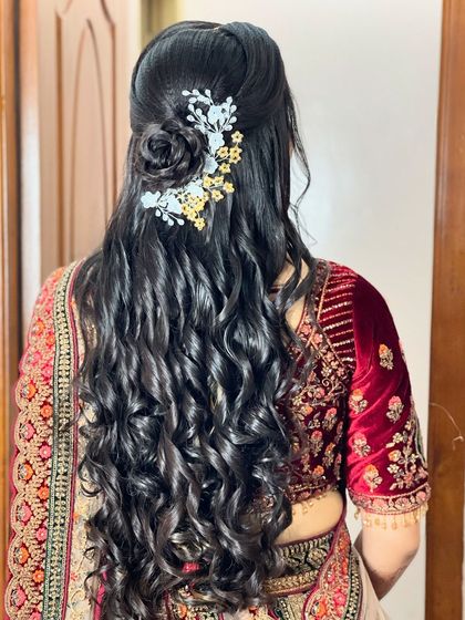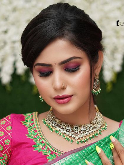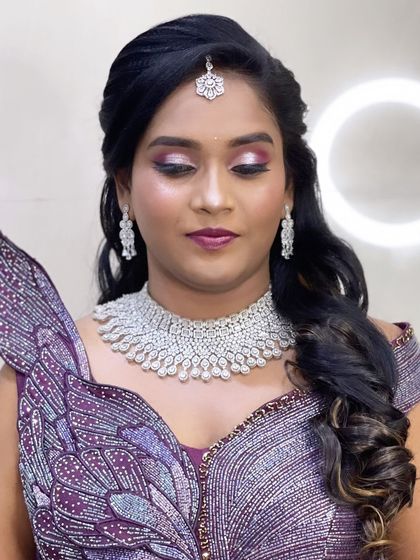 I do custom makeup and hairstyling for any special occasion, using airbrush or HD techniques, with options for both traditional South Indian and modern looks for anyone, not just brides.