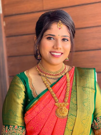 I am a certified Airbrush and HD makeup artist specializing in South Indian bridal looks for all occasions, offered at affordable prices. I also teach professional bridal makeup and hairstyle courses at my studio.