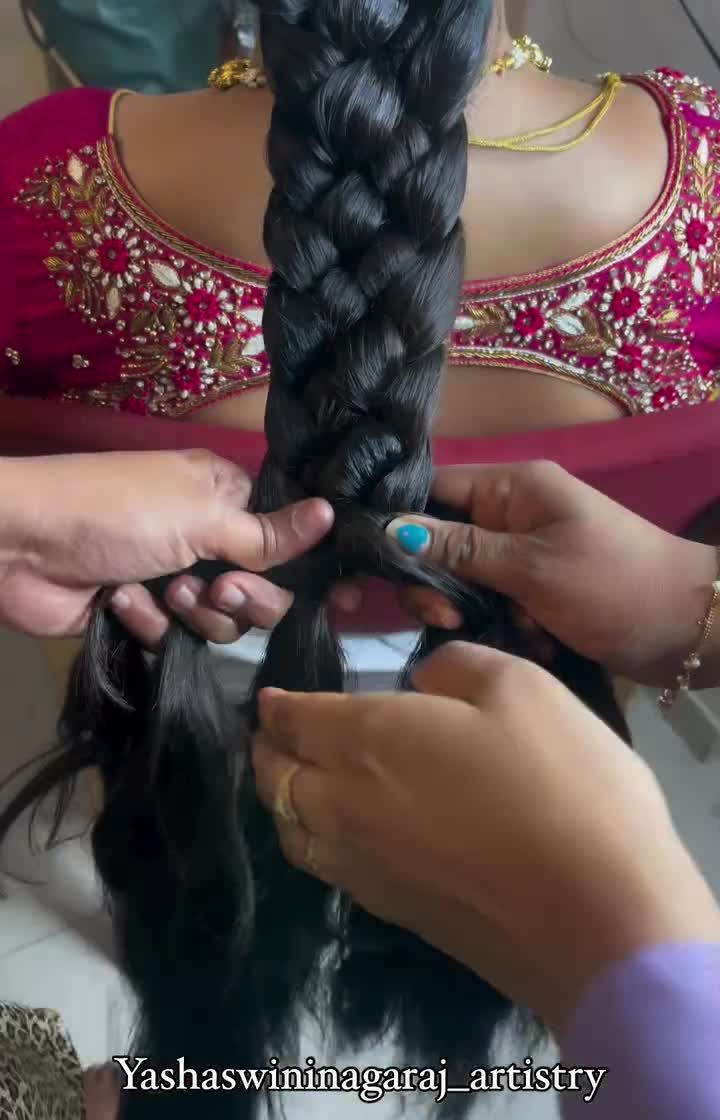 Your bridal hairstyle completes your look. I create a variety of styles, from traditional South Indian braids (jada) adorned with fresh flowers and temple accessories to modern updos and romantic loose curls.