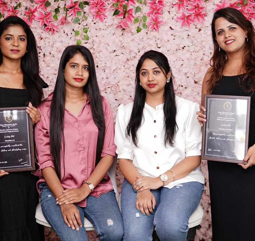 Nothing makes me prouder than seeing my students succeed. Here are some of the talented artists from my recent batches who have successfully completed the professional makeup and hairstyling course and earned their certification.