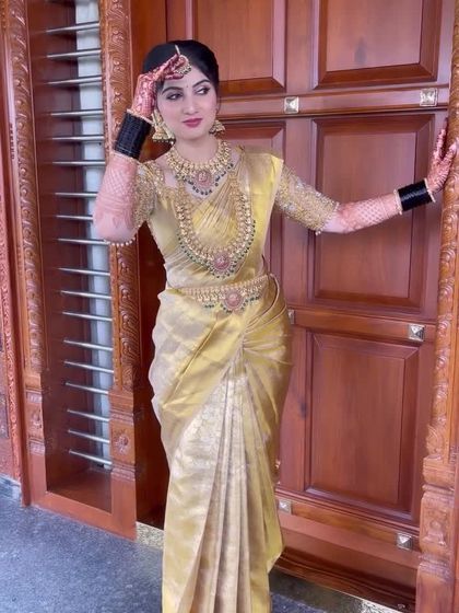 - Outfit: Standard pleating and pinning for Sarees (Kanjivaram/Silk/Chiffon) or Dupatta setting.