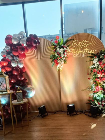I create romantic and stylish decor for anniversaries, engagement parties, and other celebrations for couples. My service includes providing custom neon signs, coordinated balloon colors, and floral accents to match your vision.