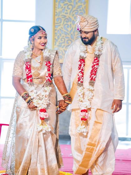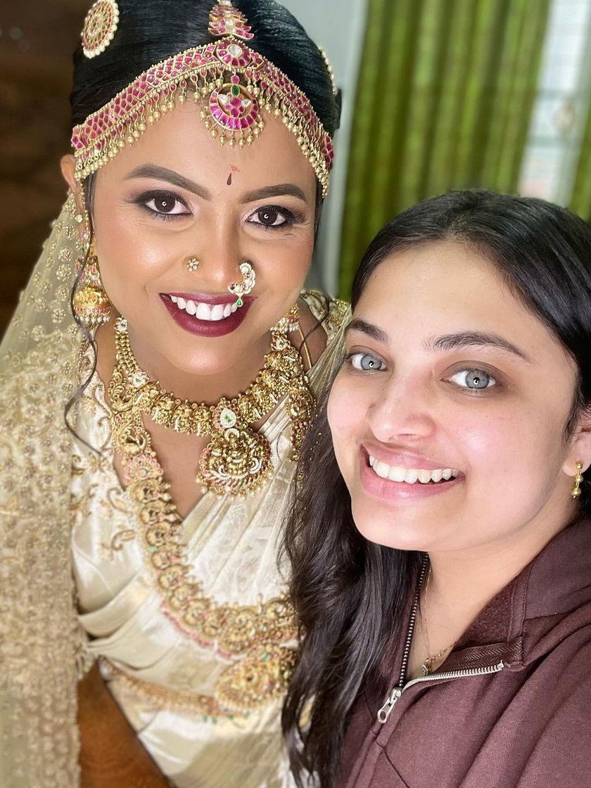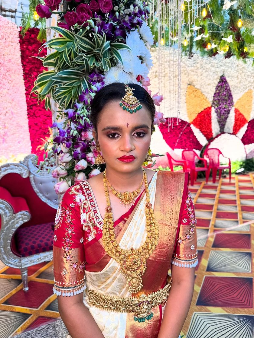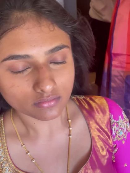 I specialize in creating authentic South Indian bridal looks for the main wedding ceremony. These looks feature a flawless, glowing base that withstands long hours, paired with classic elements like shimmery eyes, bold lips, and traditional hairstyling to perfectly complement your Kanjeevaram saree and temple jewellery.