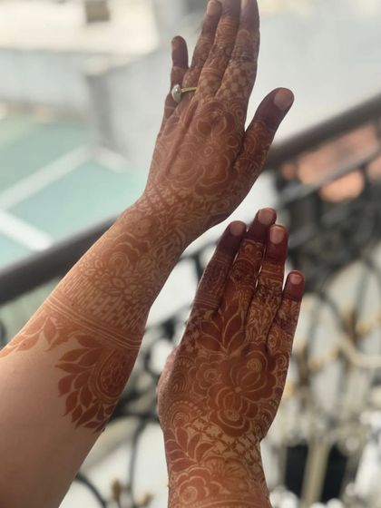 I am a certified bridal mehendi artist with 10 years of experience, offering traditional, floral, and custom designs. To ensure a safe and rich dark stain, I only use 100% organic henna paste that I prepare myself.