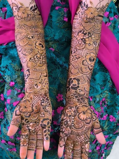 I travel anywhere for your wedding, use only organic mehendi, and stay for all your mehendi events so everyone gets custom designs.
