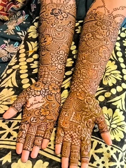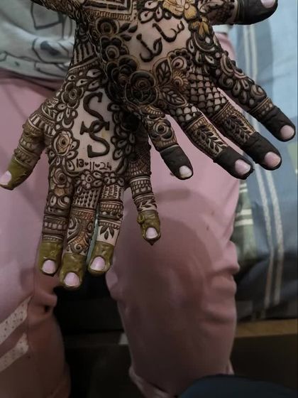 I love to make your mehendi special by adding personalized touches. I can skillfully write your name, your partner's name, or your wedding date and initials directly into the intricate patterns of your bridal design.