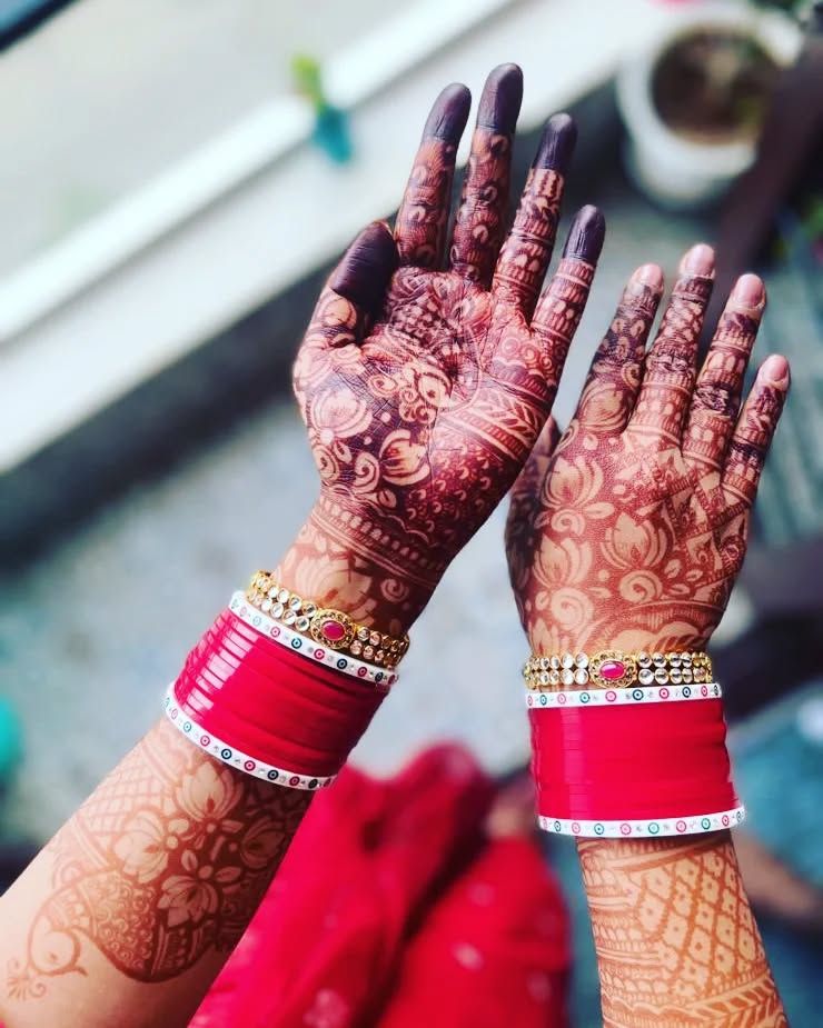 The true test of good mehendi is the color of the stain. I make my own 100% organic henna paste, which guarantees a deep, rich, and long-lasting reddish-brown or maroon color without any harmful chemicals. These photos are taken 1-2 days after application to show you the beautiful results.