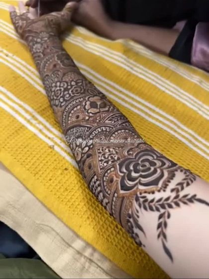 This gallery showcases my detailed bridal mehendi for hands and arms. I specialize in creating full, elaborate designs that extend up to the elbow, using a variety of styles like traditional Indian, floral, and Indo-Arabic to perfectly match your bridal look.