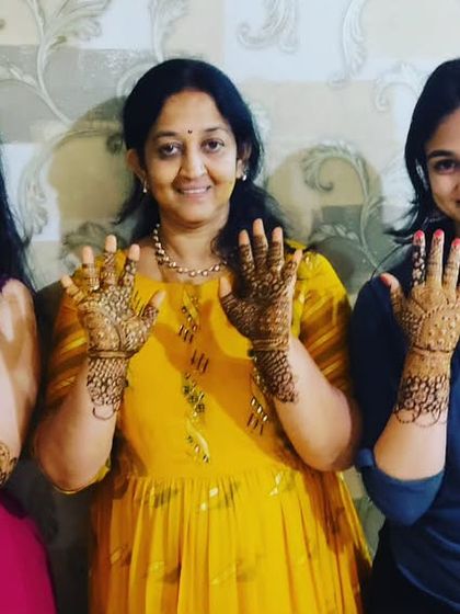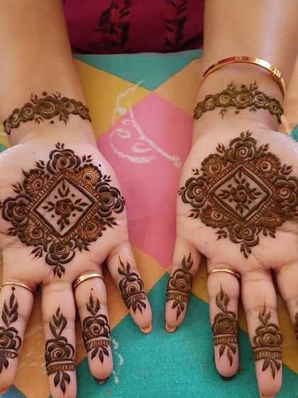 Your bride tribe deserves beautiful mehendi too. I offer a wide range of detailed designs for bridesmaids, sisters, and mothers that complement the bride's mehendi. From matching floral motifs to elegant Indo-Arabic patterns, I ensure your closest family and friends have henna they love.