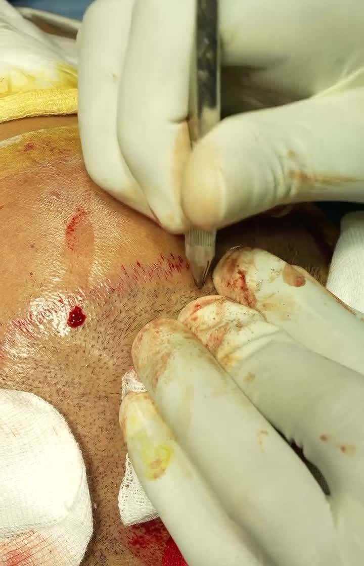 This is a look at the FUE hair transplant procedure performed in my state-of-the-art operation theatre. I use precise techniques to extract and implant individual follicles, ensuring patient safety and optimal results.