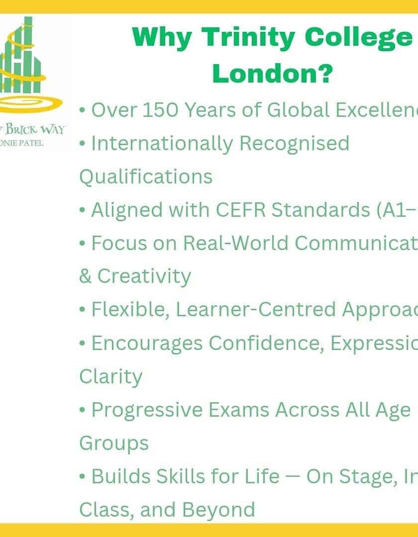 We use the Trinity College London framework because it focuses on real world skills, not just theory. This cluster shows our process, from choosing the right exam and using creative visual aids to our senior exam prep and celebrating results.