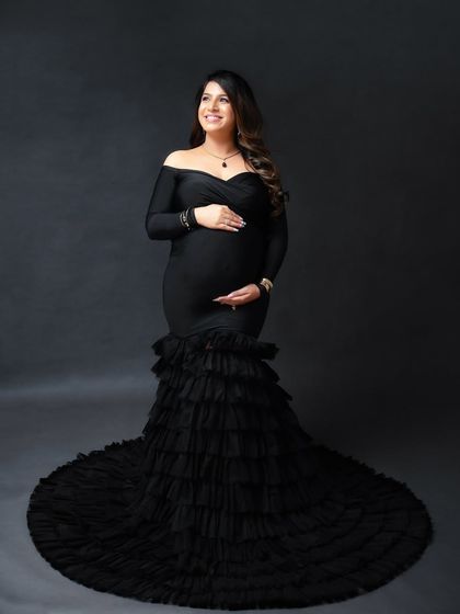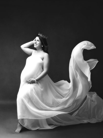 We do relaxed maternity photo sessions in our Powai studio or outdoors, offer a choice of outfits and props, include family members, and deliver both color and black & white photos without heavy editing.