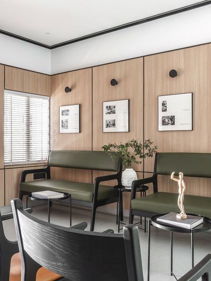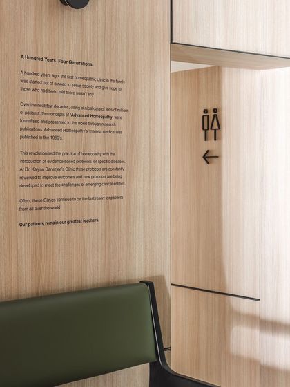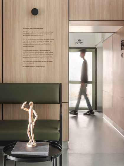 - For a homeopathy clinic, we made a quiet, simple spot with plenty of daylight, warm oak, and real plants - even the history of the clinic made its way onto the walls.
