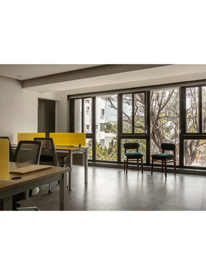 - In the middle of Bangalore, we designed a workspace around an old silver oak tree. Big windows, red facade, and the tree’s shadow shifting across the walls - it’s not your usual office.