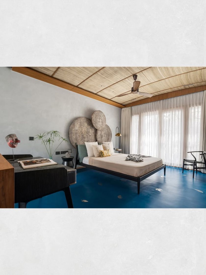 We craft tranquil interiors by celebrating the inherent beauty of natural materials. This selection highlights our use of local stone like Kadappa, oxide flooring with custom inlays, rattan headboards, and teak wood to create spaces that are tactile, warm, and deeply connected to an Indian contemporary ethos.