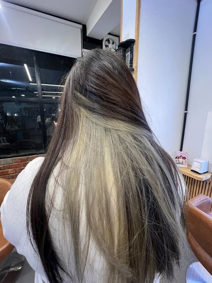 This is where we play with unique placements and shades for a truly custom look. I specialize in techniques like subtle under-layer coloring for a peekaboo effect, bold face-framing highlights to brighten your features, and artistic blends with shades like green.