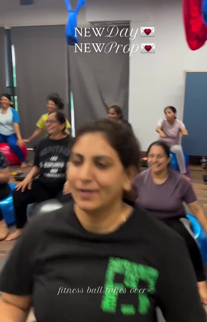 We make yoga fun and accessible for every body by using a variety of props. We incorporate yoga wheels, sticks, stability balls, straps, dumbbells, and pilates bars to help with alignment, build strength, and add a playful challenge to your practice.