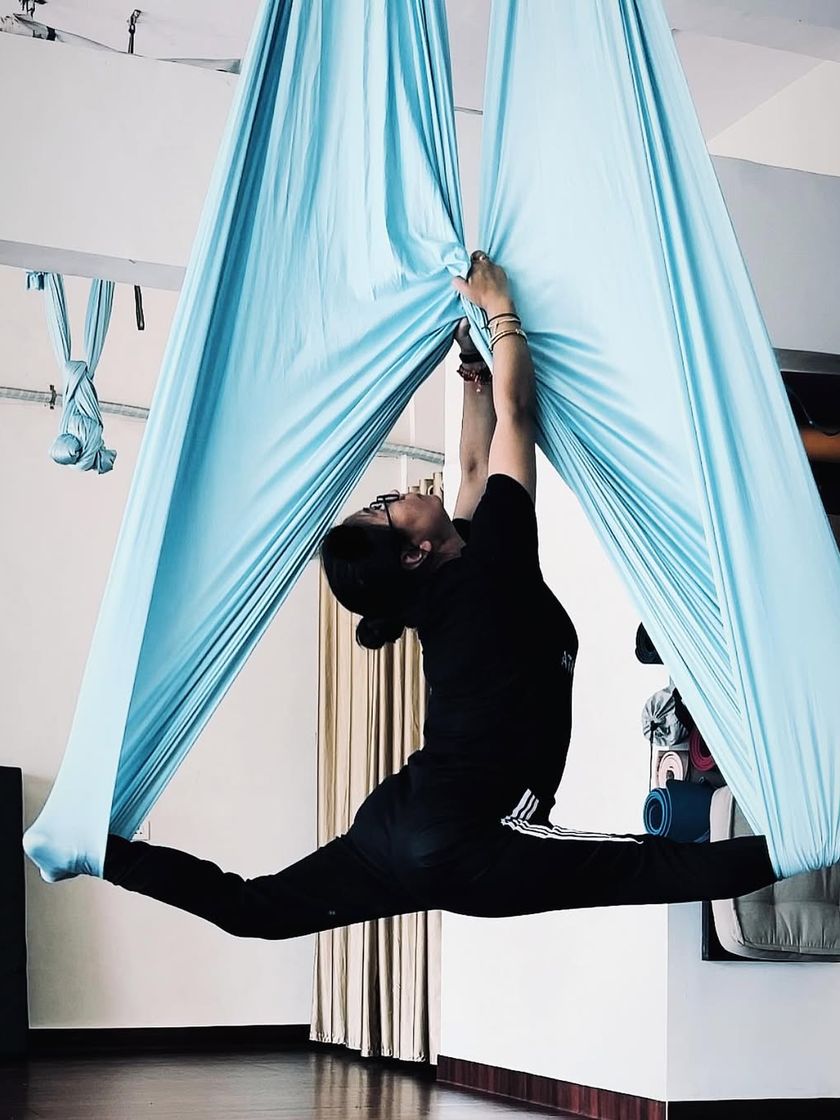 I always struggled with upper body and core strength until I found the hammock. In my classes, we use your own body weight and the fabric to build strength in a fun, accessible way, both in the air and on the mat.